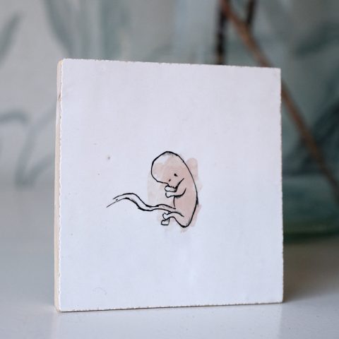 This tile depicts a print from the Nine Months Calendar. It shows the actual size of the fetus at … weeks. Use this tile as a beautiful reminder of the early stages of pregnancy or use it to tell the world that you are expecting!